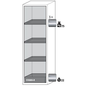 Veilige opslag, voldoet aan de geldende regelgeving voor gevaarlijke, ontvlambare producten in werkruimtes Robuust en duurzaam: stevige constructie aan de buitenkant van staal met epoxy-coating, 3 bevestigingsscharnieren per deur, volledig sluitmechanisme en beveiligingselementen ter bescherming tegen corrosie, gemonteerd buiten de opslagruimte Inklapbare deur die weinig ruimte in beslag neemt: minder ruimte vereist vóór de kast wanneer de deur geopend is Comfortabel: automatisch deursluitmechanisme, deuren kunnen in geopende stand worden gehouden. Veilige opslag van containers Altijd gesloten: het automatisch deursluitsysteem (TSA) sluit de geblokkeerde deur na 60 seconden vrij, geluidsalarm en visueel alarm voordat de deur sluit Gecontroleerd gebruik: vergrendelbare deur, compatibel met centrale vergrendeling Beluchting en ontluchting: ingebouwd beluchtings- en ventilatiesysteem voor aansluiting (diameter 75 mm) op een technisch luchtafvoersysteem Let op: voor de technische ventilatie van de kast adviseren wij de ventilatiebox met geïntegreerde filtratie (zonder gaten in de muren te boren of afvoerleidingen naar buiten).