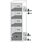 Veilige opslag, voldoet aan de geldende regelgeving voor gevaarlijke, ontvlambare producten in werkruimtes Robuust en duurzaam: stevige constructie aan de buitenkant van staal met epoxy-coating, 3 bevestigingsscharnieren per deur, volledig sluitmechanisme en beveiligingselementen ter bescherming tegen corrosie, gemonteerd buiten de opslagruimte Inklapbare deur die weinig ruimte in beslag neemt: minder ruimte vereist vóór de kast wanneer de deur geopend is Comfortabel: automatisch deursluitmechanisme, deuren kunnen in geopende stand worden gehouden. Veilige opslag van containers Altijd gesloten: het automatisch deursluitsysteem (TSA) sluit de geblokkeerde deur na 60 seconden vrij, geluidsalarm en visueel alarm voordat de deur sluit Gecontroleerd gebruik: vergrendelbare deur, compatibel met centrale vergrendeling Beluchting en ontluchting: ingebouwd beluchtings- en ventilatiesysteem voor aansluiting (diameter 75 mm) op een technisch luchtafvoersysteem Let op: voor de technische ventilatie van de kast adviseren wij de ventilatiebox met geïntegreerde filtratie (zonder gaten in de muren te boren of afvoerleidingen naar buiten).