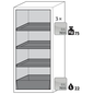 Veilige opslag, voldoet aan de geldende regelgeving voor gevaarlijke, ontvlambare producten in werkruimtes Robuust en duurzaam: Stevige constructie aan de buitenzijde van brandwerende platen met een coating van melaminehars 3 bevestigingsscharnieren per deur volledig sluitmechanisme en beveiligingselementen ter bescherming tegen corrosie, gemonteerd buiten de opslagruimte hoogwaardige deur, krasbestendig, met gestructureerd oppervlak met epoxy-coating Ergonomisch: de deur blijft in de stand staan bij het openen, automatische sluiting in geval van brand Gecontroleerd gebruik: vergrendelbare deur, compatibel met centrale vergrendeling Eenvoudig transport: geïntegreerde transportsokkel, eenvoudig afgewerkte plint of plint met 4 nivelleringsvoeten optioneel beschikbaar Beluchting en ontluchting: ingebouwd beluchtings- en ventilatiesysteem voor aansluiting (diameter 75 mm) op een technisch luchtafvoersysteem Getest en gecertificeerd conform de Amerikaanse norm FM 6050