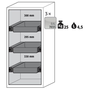 Veiligheidskast S-CLASSIC-90 S90.129.060 geel_Asecos, Totale hoogte: 1953 mm, Totale breedte: 1193 mm, Totale hoogte (Reeks): Hoog (1500 - 2300 mm), Totale breedte (Reeks): 800 mm, Aantal legborden: 3, Voor producten: Ontvlambare stoffen, Brandveilig: 90 min, Inhoud opvangbak: 33 L, Aantal vakken: 1, Model: Q90.195.090.WDAC, Aantal deuren: 1, Kleur ombouw: Grijs, Kleur deur: Zilver, Totale diepte: 615 mm, Nuttige breedte: 1050 mm, Nuttige diepte: 522 mm, Nuttige hoogte: 1647 mm, Max. belasting: 600 kg, Materiaal: Staal, Gewicht: 343 kg, RAL: 7016, Special Covid-19: nee, CLP - Ontvlambare stoffen: ja