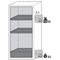 Veilige opslag, voldoet aan de geldende regelgeving voor gevaarlijke, ontvlambare producten in werkruimtes Robuust en duurzaam: Stevige constructie aan de buitenzijde van brandwerende platen met een coating van melaminehars 3 bevestigingsscharnieren per deur volledig sluitmechanisme en beveiligingselementen ter bescherming tegen corrosie, gemonteerd buiten de opslagruimte hoogwaardige deur, krasbestendig, met gestructureerd oppervlak met epoxy-coating Ergonomisch: de deur blijft in de stand staan bij het openen, automatische sluiting in geval van brand Gecontroleerd gebruik: vergrendelbare deur, compatibel met centrale vergrendeling Eenvoudig transport: geïntegreerde transportsokkel, eenvoudig afgewerkte plint of plint met 4 nivelleringsvoeten optioneel beschikbaar Beluchting en ontluchting: ingebouwd beluchtings- en ventilatiesysteem voor aansluiting (diameter 75 mm) op een technisch luchtafvoersysteem Getest en gecertificeerd conform de Amerikaanse norm FM 6050