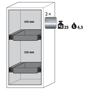 Veiligheidskast S-PEGASUS-90_Asecos, Totale hoogte: 1968 mm, Totale breedte: 596 mm, Totale hoogte (Reeks): Hoog (1500 - 2300 mm), Totale breedte (Reeks): 500 - 800 mm, Aantal legborden: 0, Voor producten: Ontvlambare stoffen, Brandveilig: 90 min, Inhoud opvangbak: 0 L, Aantal vakken: 1, Model: S90.196.060.075.FDAC, Aantal deuren: 1, Kleur ombouw: Lichtgrijs, Kleur deur: Lichtgrijs, Totale diepte: 749 mm, Nuttige breedte: 450 mm, Nuttige diepte: 657 mm, Nuttige hoogte: 1742 mm, Max. belasting: 600 kg, Materiaal: Staal, Gewicht: 310 kg, RAL: 7035, Special Covid-19: nee, CLP - Ontvlambare stoffen: ja