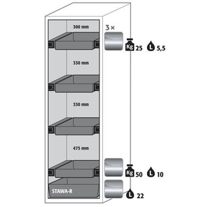 Veiligheidskast S-PHOENIX-90 S90.196.060_Asecos, Totale hoogte: 1968 mm, Totale breedte: 596 mm, Totale hoogte (Reeks): Hoog (1500 - 2300 mm), Totale breedte (Reeks): 500 - 800 mm, Aantal legborden: 0, Voor producten: Ontvlambare stoffen, Brandveilig: 90 min, Inhoud opvangbak: 22 L, Aantal vakken: 1, Model: 2x lade, 1x lade, 1x lade (afvoer), 1x opvangbak op de vloer (roestvrij staal), Aantal deuren: 1, Kleur ombouw: Lichtgrijs, Kleur deur: Lichtgrijs, Totale diepte: 749 mm, Nuttige breedte: 450 mm, Nuttige diepte: 657 mm, Nuttige hoogte: 1742 mm, Materiaal: Staal, Gewicht: 370.608 kg, RAL: 7035, Special Covid-19: nee