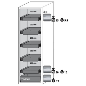 Veiligheidskast S-PHOENIX-90 S90.196.060_Asecos, Totale hoogte: 1968 mm, Totale breedte: 596 mm, Totale hoogte (Reeks): Hoog (1500 - 2300 mm), Totale breedte (Reeks): 500 - 800 mm, Aantal legborden: 0, Voor producten: Ontvlambare stoffen, Brandveilig: 90 min, Inhoud opvangbak: 22 L, Aantal vakken: 1, Model: 3x lade, 1x lade, 1x lade (afvoer), 1x opvangbak op de vloer (roestvrij staal), Aantal deuren: 1, Kleur ombouw: Wit, Kleur deur: Wit, Totale diepte: 749 mm, Nuttige breedte: 450 mm, Nuttige diepte: 657 mm, Nuttige hoogte: 1742 mm, Materiaal: Staal, Gewicht: 379.608 kg, RAL: 9016, Special Covid-19: nee