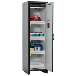 Veilige opslag, voldoet aan de geldende regelgeving voor gevaarlijke, ontvlambare producten in werkruimtes Robuust en duurzaam: stevige constructie aan de buitenzijde van brandwerende platen met een coating van melaminehars 3 bevestigingsscharnieren per deur, volledig sluitmechanisme en beveiligingselementen ter bescherming tegen corrosie, gemonteerd buiten de opslagruimte hoogwaardige deur, krasbestendig, met gestructureerd oppervlak met epoxy-coating Ergonomisch: de deur blijft in de stand staan bij het openen, automatische sluiting in geval van brand Gecontroleerd gebruik: vergrendelbare deur, compatibel met centrale vergrendeling Eenvoudig transport: geïntegreerde transportsokkel, eenvoudig afgewerkte plint of plint met 4 nivelleringsvoeten optioneel beschikbaar Beluchting en ontluchting: ingebouwd beluchtings- en ventilatiesysteem voor aansluiting (diameter 75 mm) op een technisch luchtafvoersysteem Getest en gecertificeerd conform de Amerikaanse norm FM 6050 Let op: wij raden aan om naast de kast ook de plint met verstelinrichting te bestellen. Hierdoor is het mogelijk om snel en veilig kleine oneffenheden in de vloer op te vangen, zodat de kast eenvoudig en zonder veel moeite kan worden versteld. Voor de technische ventilatie van de kast adviseren wij de ventilatiebox met geïntegreerde filtratie (zonder gaten in de muren te boren of afvoerleidingen naar buiten).