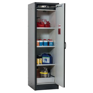Veiligheidskast Q-CLASSIC-30 Q30.195.056 grijs/geel_Asecos, Totale hoogte: 1947 mm, Totale breedte: 564 mm, Totale hoogte (Reeks): Hoog (1500 - 2300 mm), Totale breedte (Reeks): 500 - 800 mm, Aantal legborden: 3, Voor producten: Ontvlambare stoffen, Brandveilig: 30 min, Inhoud opvangbak: 22 L, Aantal vakken: 1, Model: 3x legbord, 1x rooster, 1x opvangbak op de vloer (plaatstaal met epoxy-coating), Aantal deuren: 1, Kleur ombouw: Antraciet, Kleur deur: Geel, Totale diepte: 620 mm, Nuttige breedte: 450 mm, Nuttige diepte: 519 mm, Nuttige hoogte: 1626 mm, Materiaal: Staal, Gewicht: 187.528 kg, Special Covid-19: nee
