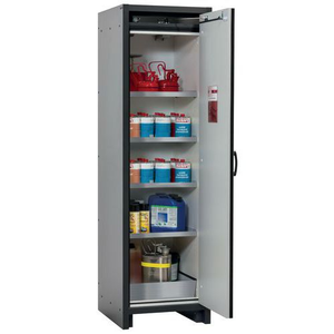 Veilige opslag, voldoet aan de geldende regelgeving voor gevaarlijke, ontvlambare producten in werkruimtes Robuust en duurzaam: stevige constructie aan de buitenzijde van brandwerende platen met een coating van melaminehars 3 bevestigingsscharnieren per deur, volledig sluitmechanisme en beveiligingselementen ter bescherming tegen corrosie, gemonteerd buiten de opslagruimte hoogwaardige deur, krasbestendig, met gestructureerd oppervlak met epoxy-coating Ergonomisch: de deur blijft in de stand staan bij het openen, automatische sluiting in geval van brand Gecontroleerd gebruik: vergrendelbare deur, compatibel met centrale vergrendeling Eenvoudig transport: geïntegreerde transportsokkel, eenvoudig afgewerkte plint of plint met 4 nivelleringsvoeten optioneel beschikbaar Beluchting en ontluchting: ingebouwd beluchtings- en ventilatiesysteem voor aansluiting (diameter 75 mm) op een technisch luchtafvoersysteem Getest en gecertificeerd conform de Amerikaanse norm FM 6050 Let op: wij raden aan om naast de kast ook de plint met verstelinrichting te bestellen. Hierdoor is het mogelijk om snel en veilig kleine oneffenheden in de vloer op te vangen, zodat de kast eenvoudig en zonder veel moeite kan worden versteld. Voor de technische ventilatie van de kast adviseren wij de ventilatiebox met geïntegreerde filtratie (zonder gaten in de muren te boren of afvoerleidingen naar buiten).