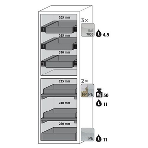 Veiligheidskast S-CLASSIC-90 S90.196.060 geel_Asecos, Totale hoogte: 1968 mm, Totale breedte: 596 mm, Totale hoogte (Reeks): Hoog (1500 - 2300 mm), Totale breedte (Reeks): 500 - 800 mm, Aantal legborden: 2, Voor producten: Ontvlambare stoffen, Brandveilig: 90 min, Inhoud opvangbak: 11 L, Aantal vakken: 1, Model: 2x opvanglegbord, 1x opvangbak op de vloer (PP), 3x lade (plaatstaal met epoxy-coating), Aantal deuren: 1, Kleur ombouw: Lichtgrijs, Kleur deur: Lichtgrijs, Totale diepte: 616 mm, Nuttige breedte: 450 mm, Nuttige diepte: 524 mm, Nuttige hoogte: 1742 mm, Materiaal: Staal, Gewicht: 316.165 kg, RAL: 7035, Special Covid-19: nee