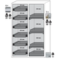 Veilige opslag, voldoet aan de geldende regelgeving voor gevaarlijke, ontvlambare producten in werkruimtes Robuust en duurzaam: Stevige constructie aan de buitenzijde van brandwerende platen met een coating van melaminehars 3 bevestigingsscharnieren per deur volledig sluitmechanisme en beveiligingselementen ter bescherming tegen corrosie, gemonteerd buiten de opslagruimte hoogwaardige deur, krasbestendig, met gestructureerd oppervlak met epoxy-coating Ergonomisch: de deur blijft in de stand staan bij het openen, automatische sluiting in geval van brand Gecontroleerd gebruik: vergrendelbare deur, compatibel met centrale vergrendeling Eenvoudig transport: geïntegreerde transportsokkel, eenvoudig afgewerkte plint of plint met 4 nivelleringsvoeten optioneel beschikbaar Beluchting en ontluchting: ingebouwd beluchtings- en ventilatiesysteem voor aansluiting (diameter 75 mm) op een technisch luchtafvoersysteem Getest en gecertificeerd conform de Amerikaanse norm FM 6050 Let op: voor de technische ventilatie van de kast adviseren wij de ventilatiebox met geïntegreerde filtratie (zonder gaten in de muren te boren of afvoerleidingen naar buiten).