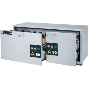 Veiligheidsonderbouwkast UB-S-90 UB90.060.140.2S_Asecos, Totale hoogte: 600 mm, Totale breedte: 1402 mm, Totale hoogte (Reeks): Laag of onder laboratoriumtafel (600 - 800 mm), Totale breedte (Reeks): 800 mm, Aantal legborden: 0, Voor producten: Ontvlambare stoffen, Brandveilig: 90 min, Inhoud opvangbak: 0 L, Aantal vakken: 1, Model: 1x lade (plaatstaal met epoxy-coating), 1x rooster (roestvrij staal), 1x tweede niveau lade, 1x lade (plaatstaal met epoxy-coating), 1x rooster (roestvrij staal), 1x tweede niveau lade (plaatstaal met epoxy-coating), Aantal deuren: 2, Kleur ombouw: Lichtgrijs, Kleur deur: Lichtgrijs, Totale diepte: 574 mm, Nuttige breedte: 1279 mm, Nuttige diepte: 452 mm, Nuttige hoogte: 502 mm, Gewicht: 281.268 kg, RAL: 7035, Special Covid-19: nee
