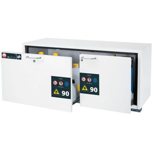 Veiligheidsonderbouwkast UB-S-90 UB90.060.140.050.2S_Asecos, Totale hoogte: 600 mm, Totale breedte: 1402 mm, Totale hoogte (Reeks): Laag of onder laboratoriumtafel (600 - 800 mm), Totale breedte (Reeks): 800 mm, Aantal legborden: 0, Voor producten: Ontvlambare stoffen, Brandveilig: 90 min, Inhoud opvangbak: 0 L, Aantal vakken: 1, Model: 1x lade, 1x lade (plaatstaal met epoxy-coating), Aantal deuren: 2, Kleur ombouw: Wit, Kleur deur: Wit, Totale diepte: 502 mm, Nuttige breedte: 1279 mm, Nuttige diepte: 382 mm, Nuttige hoogte: 502 mm, Gewicht: 256.768 kg, RAL: 9016, Special Covid-19: nee