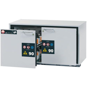 Veiligheidsonderbouwkast UB-S-90 UB90.060.110.2S_Asecos, Totale hoogte: 600 mm, Totale breedte: 1102 mm, Totale hoogte (Reeks): Laag of onder laboratoriumtafel (600 - 800 mm), Totale breedte (Reeks): 800 mm, Aantal legborden: 0, Voor producten: Ontvlambare stoffen, Brandveilig: 90 min, Inhoud opvangbak: 0 L, Aantal vakken: 1, Model: 2x lade, 2x tweede niveau lade (plaatstaal met epoxy-coating), Aantal deuren: 2, Kleur ombouw: Lichtgrijs, Kleur deur: Lichtgrijs, Totale diepte: 574 mm, Nuttige breedte: 979 mm, Nuttige diepte: 452 mm, Nuttige hoogte: 502 mm, Gewicht: 234.956 kg, RAL: 7035, Special Covid-19: nee