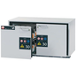 Veilige opslag, voldoet aan de geldende regelgeving voor gevaarlijke, ontvlambare producten in werkruimtes Functie / constructie: Robuust en duurzaam: Stalen constructie met epoxy-coating Werkcomfort: de laden zijn in alle posities geblokkeerd, verticale toegang tot alle containers, automatische sluiting in geval van brand Veilig: laden met aardingskabel, aansluitklem, waterdichte gelaste bak Gecontroleerd gebruik: vergrendelbare laden met geïntegreerd slot en indicator voor vergrendeling van de deuren (rood/groen) Mobiel: optionele sokkel met wielen, voor eenvoudig verplaatsen van de kast Beluchting en ontluchting: ingebouwd beluchtings- en ventilatiesysteem voor aansluiting (diameter 50 mm) op een technisch luchtafvoersysteem