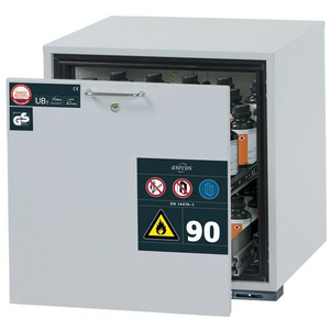 Veiligheidsonderbouwkast UB-S-90 UB90.060.059.S_Asecos, Totale hoogte: 600 mm, Totale breedte: 593 mm, Totale hoogte (Reeks): Laag of onder laboratoriumtafel (600 - 800 mm), Totale breedte (Reeks): 500 - 800 mm, Aantal legborden: 0, Voor producten: Ontvlambare stoffen, Brandveilig: 90 min, Inhoud opvangbak: 0 L, Aantal vakken: 1, Model: 1x lade, 1x rooster, 1x tweede niveau lade (roestvrij staal), Aantal deuren: 1, Kleur ombouw: Lichtgrijs, Kleur deur: Lichtgrijs, Totale diepte: 574 mm, Nuttige breedte: 470 mm, Nuttige diepte: 452 mm, Nuttige hoogte: 502 mm, Gewicht: 145.096 kg, RAL: 7035, Special Covid-19: nee