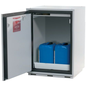 Veilige opslag, voldoet aan de geldende regelgeving voor gevaarlijke, ontvlambare producten in werkruimtes Functie / constructie: Robuust en duurzaam: stalen constructie aan de buitenkant met epoxy-coating Werkcomfort: de deuren zijn in alle posities geblokkeerd, veilige toegang tot alle containers – openingshoek van de deuren 93°, binnenkant van de kast is volledig zichtbaar Gecontroleerd gebruik: vergrendelbare deuren slot, indicator voor deurvergrendeling (rood/groen) Mobiel: optionele sokkel met wielen, voor eenvoudig verplaatsen van de kast Beluchting en ontluchting: ingebouwd beluchtings- en ventilatiesysteem voor aansluiting (diameter 50 mm) op een technisch luchtafvoersysteem