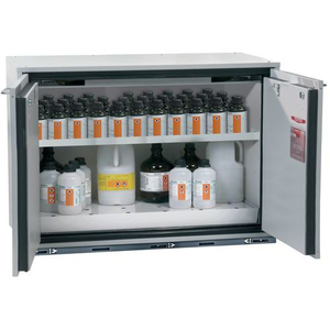 Veiligheidsonderbouwkast UB-T-90_Asecos, Totale hoogte: 800 mm, Totale breedte: 1102 mm, Totale hoogte (Reeks): Laag of onder laboratoriumtafel (600 - 800 mm), Totale breedte (Reeks): 800 mm, Aantal legborden: 1, Voor producten: Ontvlambare stoffen, Brandveilig: 90 min, Inhoud opvangbak: 25.5 L, Aantal vakken: 1, Model: 1x legbord, 1x rooster, 1x opvangbak op de vloer (plaatstaal met epoxy-coating), Aantal deuren: 2, Kleur ombouw: Lichtgrijs, Kleur deur: Lichtgrijs, Totale diepte: 600 mm, Nuttige breedte: 979 mm, Nuttige diepte: 482 mm, Nuttige hoogte: 702 mm, Materiaal: Staal, Gewicht: 260.456 kg, RAL: 7035, Special Covid-19: nee