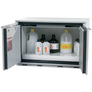 Veiligheidsonderbouwkast UB-T-90_Asecos, Totale hoogte: 600 mm, Totale breedte: 893 mm, Totale hoogte (Reeks): Laag of onder laboratoriumtafel (600 - 800 mm), Totale breedte (Reeks): 800 mm, Aantal legborden: 0, Voor producten: Ontvlambare stoffen, Brandveilig: 90 min, Inhoud opvangbak: 20 L, Aantal vakken: 1, Model: 1x rooster, 1x opvangbak op de vloer (plaatstaal met epoxy-coating), Aantal deuren: 2, Kleur ombouw: Lichtgrijs, Kleur deur: Lichtgrijs, Totale diepte: 574 mm, Nuttige breedte: 771 mm, Nuttige diepte: 452 mm, Nuttige hoogte: 502 mm, Materiaal: Staal, Gewicht: 167.500 kg, RAL: 7035, Special Covid-19: nee