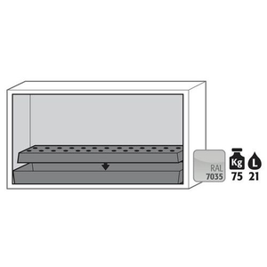 Veiligheidsonderbouwkast UB-T-90_Asecos, Totale hoogte: 600 mm, Totale breedte: 1102 mm, Totale hoogte (Reeks): Laag of onder laboratoriumtafel (600 - 800 mm), Totale breedte (Reeks): 800 mm, Aantal legborden: 0, Voor producten: Ontvlambare stoffen, Brandveilig: 90 min, Inhoud opvangbak: 21 L, Aantal vakken: 1, Model: 1x rooster, 1x opvangbak op de vloer (plaatstaal met epoxy-coating), Aantal deuren: 2, Kleur ombouw: Lichtgrijs, Kleur deur: Lichtgrijs, Totale diepte: 502 mm, Nuttige breedte: 979 mm, Nuttige diepte: 382 mm, Nuttige hoogte: 502 mm, Materiaal: Staal, Gewicht: 186.800 kg, RAL: 7035, Special Covid-19: nee
