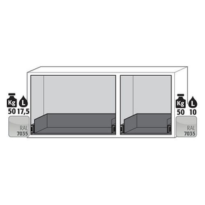 Veiligheidsonderbouwkast UB-S-90 UB90.060.140.050.UL.2S, Totale hoogte: 600 mm, Totale breedte: 1402 mm, Totale hoogte (Reeks): Laag of onder laboratoriumtafel (600 - 800 mm), Totale breedte (Reeks): 800 mm, Aantal legborden: 0, Voor producten: Ontvlambare stoffen, Brandveilig: 90 min, Inhoud opvangbak: 0 L, Aantal vakken: 1, Model: 1x lade, 1x lade (plaatstaal met epoxy-coating), Aantal deuren: 2, Kleur ombouw: Lichtgrijs, Kleur deur: Lichtgrijs, Totale diepte: 502 mm, Nuttige breedte: 1279 mm, Nuttige diepte: 382 mm, Nuttige hoogte: 502 mm, Gewicht: 235.000 kg, RAL: 7035, Special Covid-19: nee