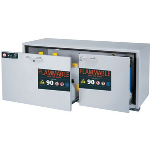 Veiligheidsonderbouwkast UB-S-90 UB90.060.140.UL.2S_Asecos, Totale hoogte: 600 mm, Totale breedte: 1402 mm, Totale hoogte (Reeks): Laag of onder laboratoriumtafel (600 - 800 mm), Totale breedte (Reeks): 800 mm, Aantal legborden: 0, Voor producten: Ontvlambare stoffen, Brandveilig: 90 min, Inhoud opvangbak: 0 L, Aantal vakken: 1, Model: 1x lade, 1x lade (plaatstaal met epoxy-coating), Aantal deuren: 2, Kleur ombouw: Lichtgrijs, Kleur deur: Lichtgrijs, Totale diepte: 574 mm, Nuttige breedte: 1279 mm, Nuttige diepte: 452 mm, Nuttige hoogte: 502 mm, Gewicht: 263.768 kg, RAL: 7035, Special Covid-19: nee
