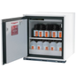 Veilige opslag, voldoet aan de geldende regelgeving voor gevaarlijke, ontvlambare producten in werkruimtes Functie / constructie: Robuust en duurzaam: stalen constructie aan de buitenkant met epoxy-coating Werkcomfort: de deuren zijn in alle posities geblokkeerd, veilige toegang tot alle containers – openingshoek van de deuren 93°, binnenkant van de kast is volledig zichtbaar Gecontroleerd gebruik: vergrendelbare deuren slot, indicator voor deurvergrendeling (rood/groen) Mobiel: optionele sokkel met wielen, voor eenvoudig verplaatsen van de kast Beluchting en ontluchting: ingebouwd beluchtings- en ventilatiesysteem voor aansluiting (diameter 50 mm) op een technisch luchtafvoersysteem