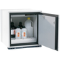 Veilige opslag, voldoet aan de geldende regelgeving voor gevaarlijke, ontvlambare producten in werkruimtes Functie / constructie: Robuust en duurzaam: stalen constructie aan de buitenkant met epoxy-coating Werkcomfort: de deuren zijn in alle posities geblokkeerd, veilige toegang tot alle containers – openingshoek van de deuren 93°, binnenkant van de kast is volledig zichtbaar Gecontroleerd gebruik: vergrendelbare deuren slot, indicator voor deurvergrendeling (rood/groen) Mobiel: optionele sokkel met wielen, voor eenvoudig verplaatsen van de kast Beluchting en ontluchting: ingebouwd beluchtings- en ventilatiesysteem voor aansluiting (diameter 50 mm) op een technisch luchtafvoersysteem