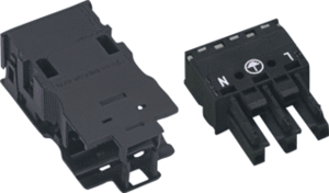 Wago conn. v insteekbare gebouwinstall., (hxbxl) 15.6x30x77mm, 3 polen, behuizing polyamide (PA), beschermingsgraad (IP) overig, contactmateriaal cuSn, uitvoering contrastekker (female), codering/contactinzetstuk zwart, mechanische codering, 2 aansluitingen per pool,