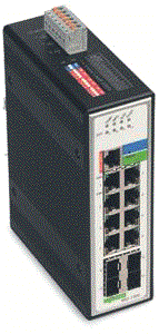 Wago netwerkswitch, (bxdxh) 50x120x162mm, managebaar, DIN-rail, ethernet, 8 poorten 10/100/1000 Mbps, 1 overige poorten, 4 poorten 1000 Mbps GBIC, power over Ethernet overig, beschermingsgraad (IP) IP30
