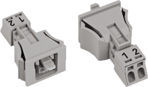 Wago Winsta Mini 890 conn. v insteekbare gebouwinstall., 2 polen, behuizing polyamide (PA), beschermingsgraad (IP) IP20, contactmateriaal overig, uitvoering contrastekker (female), codering/contactinzetstuk grijs, 1 aansluitingen per pool, aansluitwijze veerklemaansluiting, pool-markering overig,