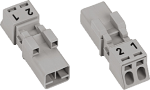 Wago Winsta Mini 890 conn. v insteekbare gebouwinstall., (hxbxl) 11.7x10.4x34.1mm, 2 polen, halogeenvrij, behuizing polyamide (PA), beschermingsgraad (IP) IP20, contactmateriaal cuSn, uitvoering stekker (Male), codering/contactinzetstuk grijs, mechanische codering, 1 aansluitingen per pool,