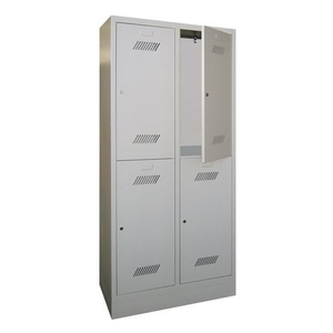 Garderobekast met 4 vakken Medium, Type garderobekast: Met garderobe, Materiaal: Staal, Aantal vakken/kolom: 2 (speciaal voor helmen), Aantal kastkolommen: 2, Onderstel: Op sokkel, Breedte kolom: 400 mm, Type sluiting: Met hangslot, Hoogte: 1850 mm, Breedte: 800 mm, Diepte: 500 mm, Coating: Epoxy, Kleur ombouw: Lichtgrijs, Kleur deur: Lichtgrijs, RAL: 7035, Geleverd gemonteerd: ja