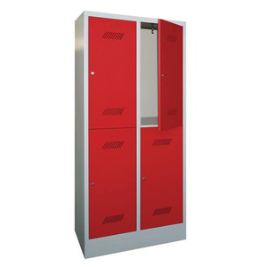 Garderobekast met 4 vakken Medium, Type garderobekast: Met garderobe, Materiaal: Staal, Aantal vakken/kolom: 2 (speciaal voor helmen), Aantal kastkolommen: 2, Onderstel: Op sokkel, Breedte kolom: 400 mm, Type sluiting: Met hangslot, Hoogte: 1850 mm, Breedte: 800 mm, Diepte: 500 mm, Coating: Epoxy, Kleur ombouw: Lichtgrijs, Kleur deur: Rood, RAL: 7035 3000, Geleverd gemonteerd: ja