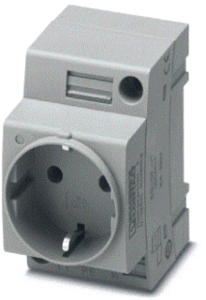 Phoenix Contact wandcontactdoos modulair, nom. (meet)spanning 250V, nom. (meet)stroom 16A, spanningstype AC, uitvoering stekker CEE 7/4 (Type F), breedte in module-eenheden 2.5, inbouwdiepte 75mm, beschermingsgraad (IP) IP20, 1 contactdozen