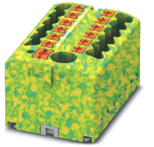 Phoenix Contact verbindingsrijgklem, groen/geel, (bxhxd) 41x28.6x21.7mm, brandbaarheidsklasse isolatiemateri V0, nom. (meet-)stroom In 24A, uitvoering elektrische aansluiting overig, overig, aansluitbare geleiderdoorsnede fijn 0.14 - 2.5mm², 1 aansluitniveaus, 13 klemposities per aansluit,