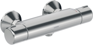 Hansa Micra douchemengkraan (opbouw), chroom, met koppelingen, oppervlaktebescherming verchroomd, oppervlaktebehandeling gepolijst, hartafstand 150mm, kraan messing, maat aansluiting aanvoer 1/2" (15), type greep tweegreeps, koele behuizing, aansluiting aanvoer overig, plaats uitlaat naar beneden,