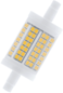 Osram LED Line led-lamp, meerkleurig, dimbaar, voet R7s, 12W, temperatuur 2700K, energie-efficiƫntieklasse volgens E E, uitvoering glas/afdekking helder, weergave-index 80 - 89, lichtstroom 1521lm, lampvorm buis tweekneeps, lampaanduiding overig, lichtkleur vlgs. EN 12464-1 warmwit < 3300 K,