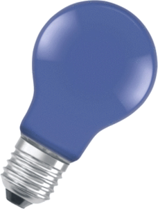 Osram Star led-lamp, blauw, voet E27, 2.5W, temperatuur 9000K, energie-efficiƫntieklasse volgens E G, uitvoering glas/afdekking gematteerd, lichtstroom 10lm, lampvorm peer, lampaanduiding A-type, filament lamp, lichtkleur vlgs. EN 12464-1 daglicht wit > 5300 K, specifieke lichtstroom lamp 4lm/W,