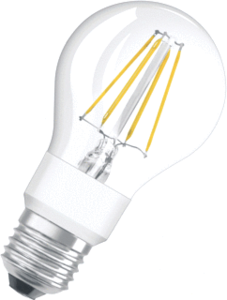 Osram Retrofit Classic A led-lamp, dimbaar, voet E27, 7W, temperatuur 2200 - 2700K, energie-efficiƫntieklasse volgens E E, uitvoering glas/afdekking helder, weergave-index 80 - 89, lichtstroom 806lm, lampvorm peer, lampaanduiding A-type, filament lamp, lichtkleur vlgs. EN 12464-1 warmwit < 3300 K,