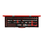 Tbv handbediende schroefverbindingen Rode stalen cassette met schuimstof inleg Inhoud: 1/4" 2C omschakelbare ratel met schakelpal fijn getand, 72 tanden | 150 mm 1/4" dopsleutel 6-kant 4 4,5 5 5,5 6 7 8 9 10 11 12 13 | 25 mm 1/4" Dopsleutelschroevendraaier binnenzeskant IN 4 5 6 8 | 37 mm 1/4" Dopsleutelschroevendraaier sleuf 5,5 | 37 mm 1/4" Dopsleutelschroevendraaier kruiskop PH 2 | 37 mm 1/4" Dopsleutelschroevendraaier kruiskop PZ 2 | 37 mm 1/4" Dopsleutelschroevendraaier TX met boorgat T10 T15 T20 T25 T27 T30 T40 | 37 mm 1/4" verlengstuk 50 100 mm 1/4" cardangewricht | 32 mm 1/2" 2C omschakelbare ratel met schakelpal fijn getand, 72 tanden | 250 mm 1/2" dopsleutel 6-kant 10 11 12 13 14 15 16 17 18 19 21 22 24 1/2" verlengstuk 75 125 250 mm 1/2" cardangewricht | 66 mm Bitadapter 1/2" 4-kant x 5/16" 6-kant | 38 mm