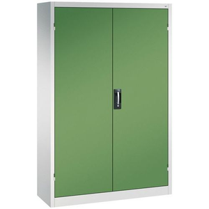 Draaideurkast voor zware lasten hoogte 1950 mm, Max. belasting: 700 kg, Materiaal: Staal, Totale hoogte: 1950 mm, Totale breedte: 1200 mm, Aantal legborden: 4, Totale diepte: 400 mm, Frame kleur: Lichtgrijs, Kleur deur: Lichtgroen, Type: Hoge kast, Type sluiting: Met sleutel, Max. belasting per legbord: 70 kg, Max. belasting per lade: 0 kg, Aantal laden: 0, Met lade: nee, Geleverd gemonteerd: ja, Gerecycled product: 95 %, Eco-verantwoordelijke aanpak: ja, Deurmateriaal: Staal, Frame materiaal: Staal