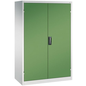 Draaideurkast voor zware lasten hoogte 1950 mm, Max. belasting: 700 kg, Materiaal: Staal, Totale hoogte: 1950 mm, Totale breedte: 1200 mm, Aantal legborden: 4, Totale diepte: 600 mm, Frame kleur: Lichtgrijs, Kleur deur: Lichtgroen, Type: Hoge kast, Type sluiting: Met sleutel, Max. belasting per legbord: 70 kg, Max. belasting per lade: 0 kg, Aantal laden: 0, Met lade: nee, Geleverd gemonteerd: ja, Gerecycled product: 95 %, Eco-verantwoordelijke aanpak: ja, Deurmateriaal: Staal, Frame materiaal: Staal
