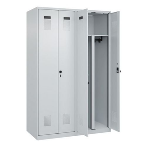 Garderobekast vervuilende industrie Evolo Plus, Type garderobekast: Met vakken en garderobe, Materiaal: Staal, Aantal kastkolommen: 2, Onderstel: Op sokkel, Aantal deuren: 4, Type sluiting: Met hangslot, Hoogte: 1850 mm, Breedte: 1200 mm, Diepte: 500 mm, Nuttige breedte vak: 298 mm, Nuttige diepte vak: 477 mm, Coating: Gegalvaniseerd, Kleur ombouw: Grijs, Kleur deur: Grijs, Geleverd gemonteerd: ja, Beluchting: ja, Type nr.: 049002-40P|S10013, Aantal vakken: 4