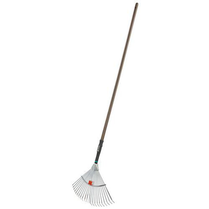 Perfect voor het harken van fijne en grove materialen. Met stalen tanden met gegalvaniseerde veer verstelbaar van 30 tot 50 cm. Gelakte steel van beukenhout.