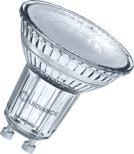 Ledvance led-lamp, dimbaar, voet GU10, 4.5W, temperatuur 4000K, energie-efficiƫntieklasse volgens E F, uitvoering glas/afdekking helder, weergave-index 90 - 100, lichtstroom 350lm, lampvorm reflector, lampaanduiding PAR16, lichtkleur vlgs. EN 12464-1 neutraal wit 3300 - 5300,