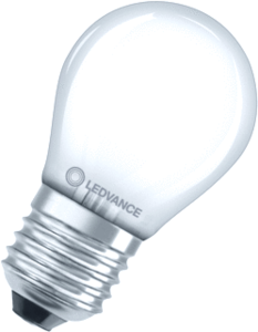 Ledvance led-lamp, wit, voet E27, 4W, temperatuur 2700K, energie-efficiƫntieklasse volgens E E, uitvoering glas/afdekking gematteerd, weergave-index 80 - 89, lichtstroom 470lm, lampvorm peer, lampaanduiding P45, filament lamp, lichtkleur vlgs. EN 12464-1 warmwit < 3300 K,