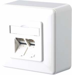 Metz Connect E-DAT datacontactdoos twisted pair, wit, opbouw (stucwerk), wandgootinbouw, samenstelling basiselement met complete, connectortype 2xRJ45-8P8C, incl. connectoren, geschikt voor aantal connectoren 2, categorie 6, RAL-nummer 9010, aansluitwijze LSA, bussen afgeschermd,