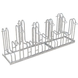 Zeer robuust en stabiel fietsenrek. Bestand tegen slechte weersomstandigheden. Dubbelzijdige vorm neemt weinig ruimte in. Bevestiging op de grond met schroeven (niet meegeleverd). Let op: bevestigingsset en haken apart te bestellen.