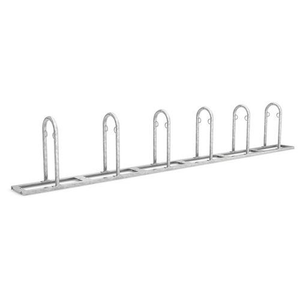 Fietsaanleunbeugel model TRACK, losstaand, robuust en voordelig model. Voor een comfortabele en veilige stalling van uw fietsen. Met geïntegreerde stalen oogjes voor diefstalbeveiliging. Bestand tegen slechte weersomstandigheden. Hoogwaardige gegalvaniseerde afwerking.