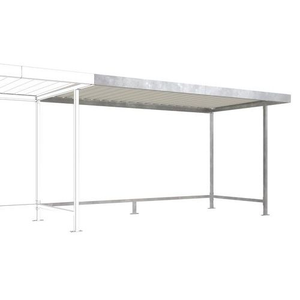 Uitbreidingsmodule voor fietsenstalling, Totale lengte: 4.30 m, Totale diepte: 2.34 m, Model: L15, Aantal plaatsen: 12, Totale hoogte: 2.20 m, Kleur: Grijs Wit, Coating: Gegalvaniseerd, RAL: 9002, Frame materiaal: Staal, Montage: Zelfbouw, Recyclebare verpakking: Ja - 100%, Wand materiaal: Staal