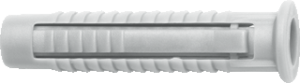 Celo universele plug, kunststof, grijs, lengte 40mm, geschikt voor schroefdiameter 4.5 - 6mm, boorgatdiameter 8mm, met rand, 100 per verpakking, boorgatdiepte 55mm, geschikt voor gasbeton, geschikt voor houtdraadbout, geschikt voor spaanplaatschroef, kwaliteitsklasse PA 6,